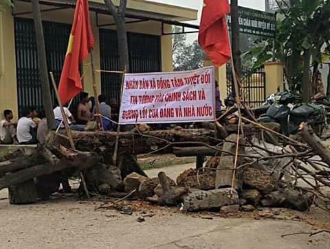 Xe vào xã Đồng Tâm bị dân làng vây chặt (16.4.2017)