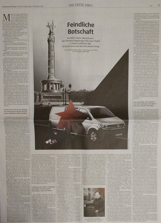 Nhật báo Süddeutsche Zeitung ra hôm 7.12.2017 đã tường trình nhiều chi tiết mới về vụ bắt cóc ông Trịnh Xuân Thanh