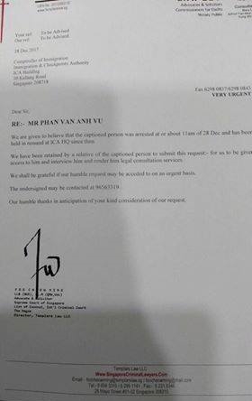 Schreiben des Rechtsanwalts von Phan Van Anh Vu an die Immigration & Checkpoints Authority