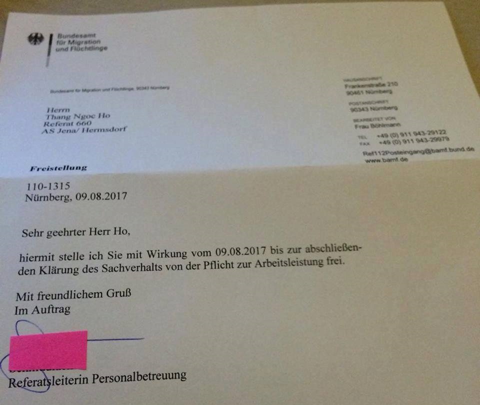 Zur Erinnerung: Ho N.Thang hatte jahrelang als Asylentscheider und Asylanhörer beim Bundesamt für Migration und Flüchtlinge in Jena in Thüringen gearbeitet. Zeitgleich hatte er für die vietnamesische Parteizeitung ´´Nhan Dan´´ und für weitere vietnamesischsprachige Zeitungen Artikel geschrieben, in denen er deutsche Politiker beleidigte und beschimpfte. Als Mitarbeiter einer deutschen Behörde muss er jedoch politisch neutral auftreten. Gleichzeitig ließen seine Artikel Zweifel daran aufkommen, ob er zu den Grundsätzen der freiheitlich-demokratischen Grundordnung steht. Das wird aber von einem Mitarbeiter einer deutschen Behörde verlangt.